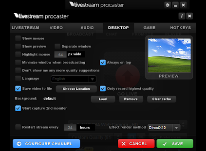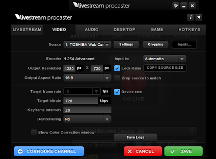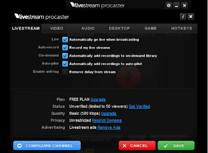 - Télécharger le procaster : http://new.livestream.com/broadcast-live/encoder